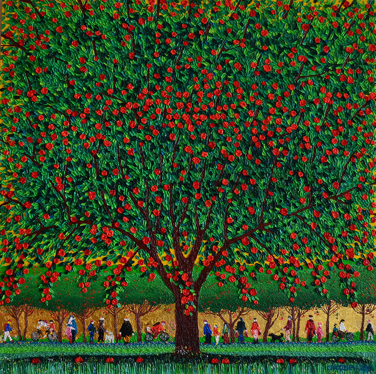 Изобилие-яблоня. 2017. Холст, масло, сусальное золото. 100х100