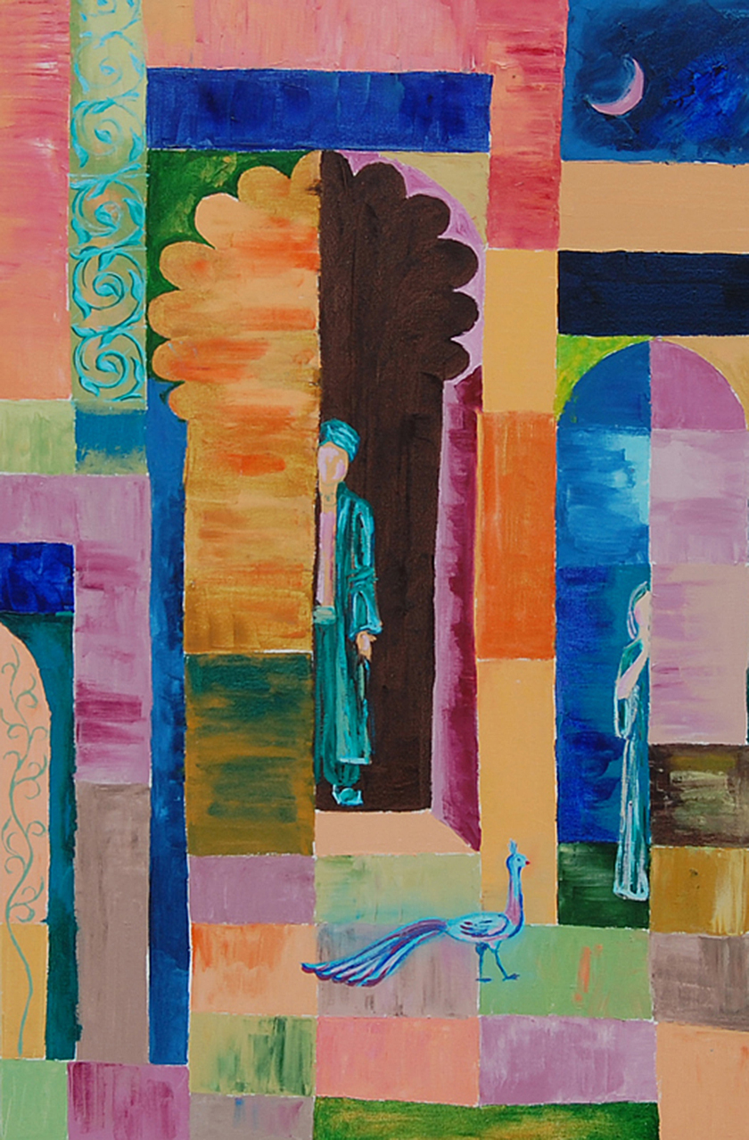 Волшебник, павлин и девушка. 2011.Холст, масло. 90х60
