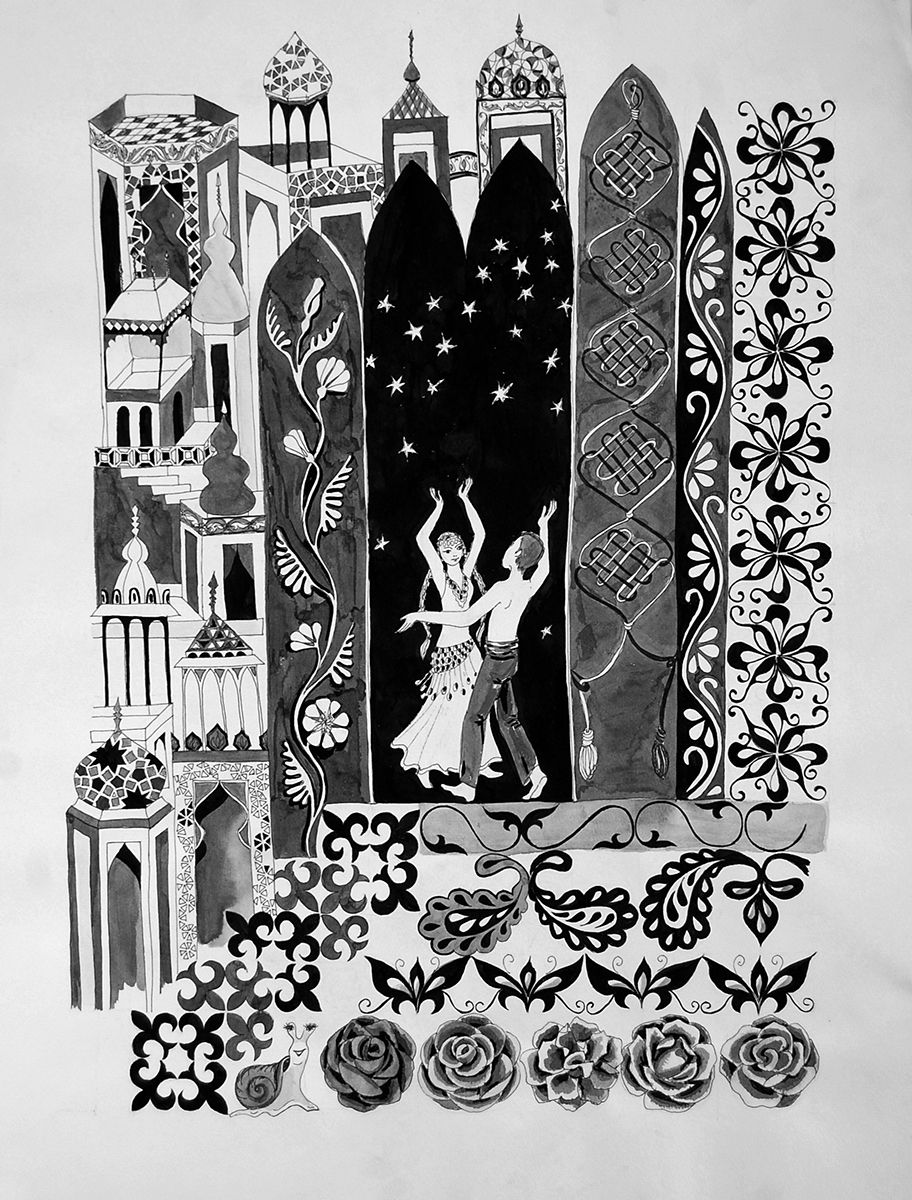 Изсерии «Oriental glam». Танец. 2011. Бумага, тушь. 60х42