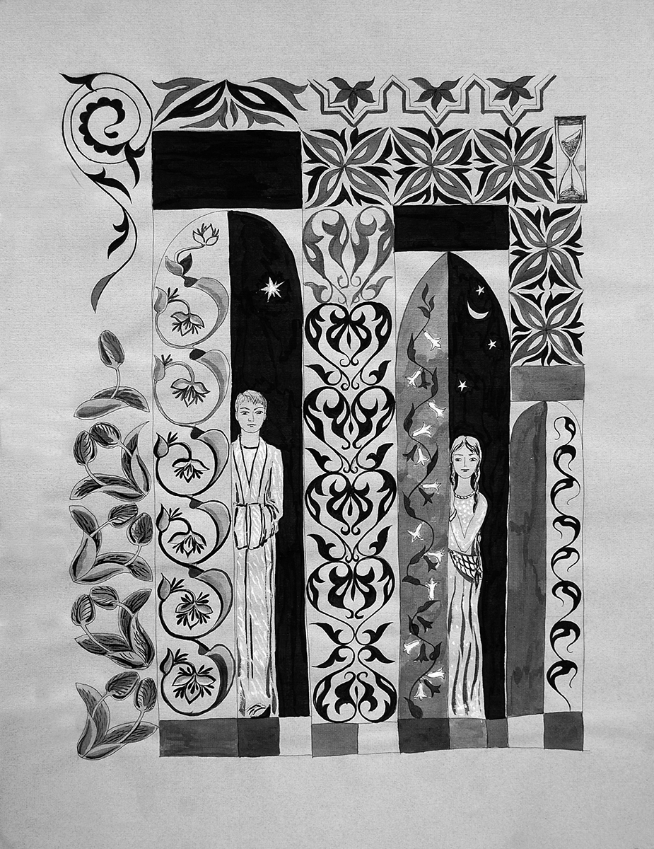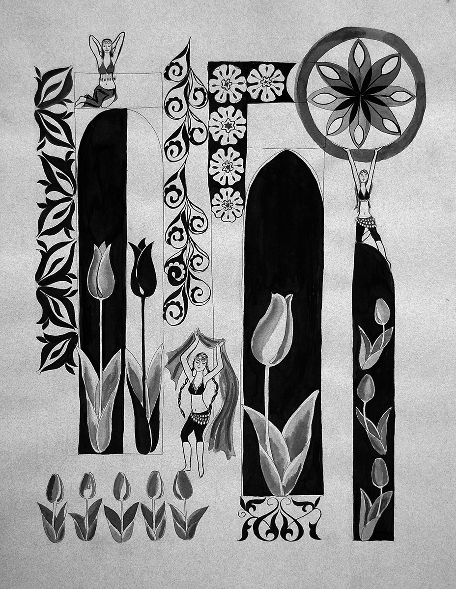 Из серии «Orientalglam». Когда цветут тюльпаны. 2012. Бумага, тушь. 60х42